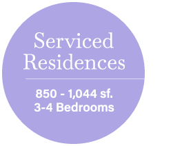 Thoughtfully crafted serviced residences with 3 to 4 bedrooms, sized between 850 sq ft to 1,044 sq ft. A rare collection of accessible luxury for city living.